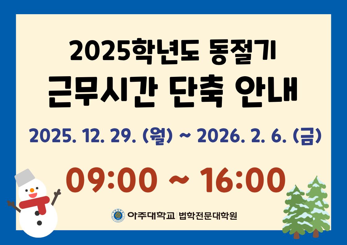 [공지] [교학팀] 2025학년도 동절기 근무시간 단축 안내
