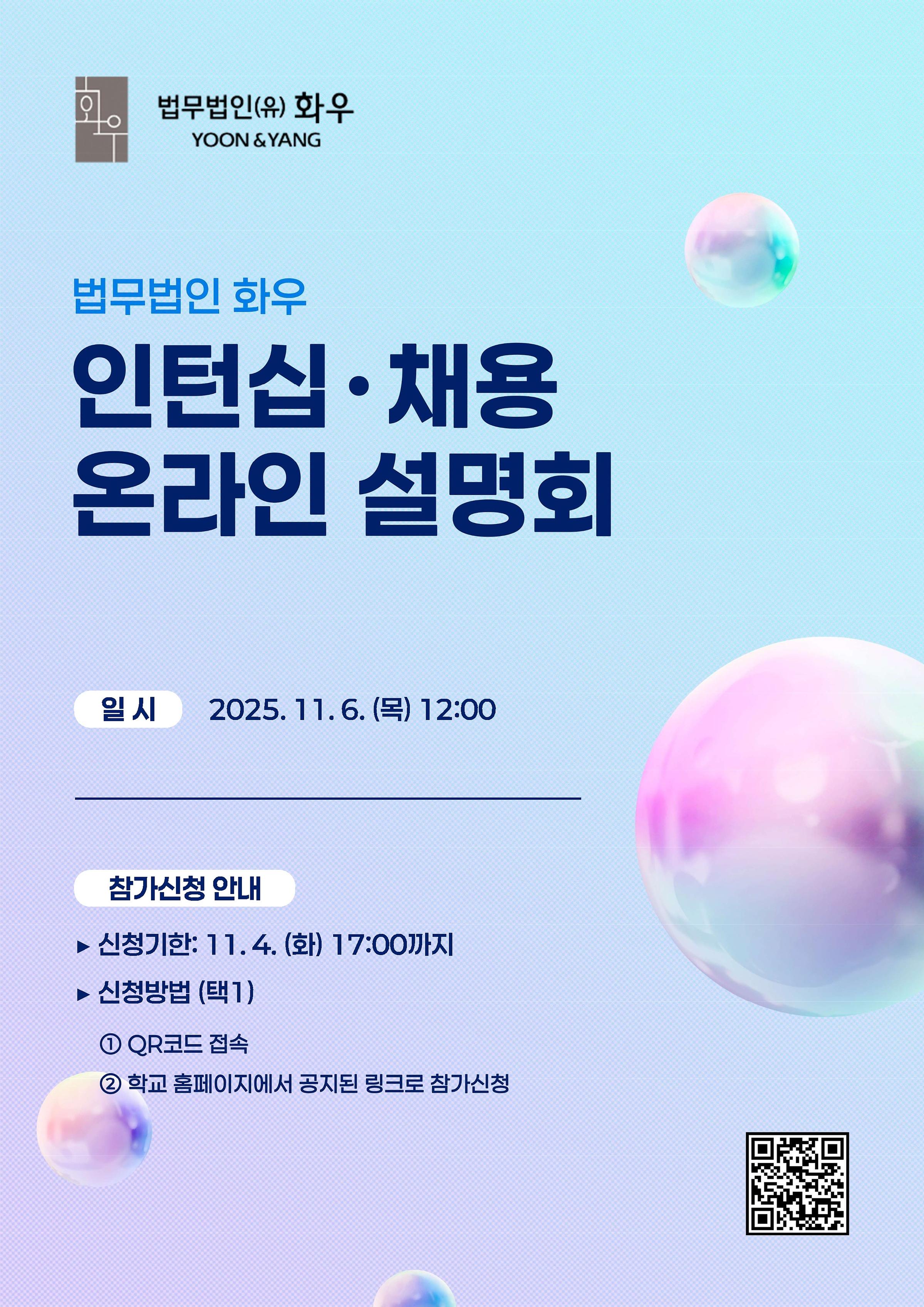 [법무법인(유한) 화우] 2026년 동계 법학전문대학원 인턴십 프로그램 안내