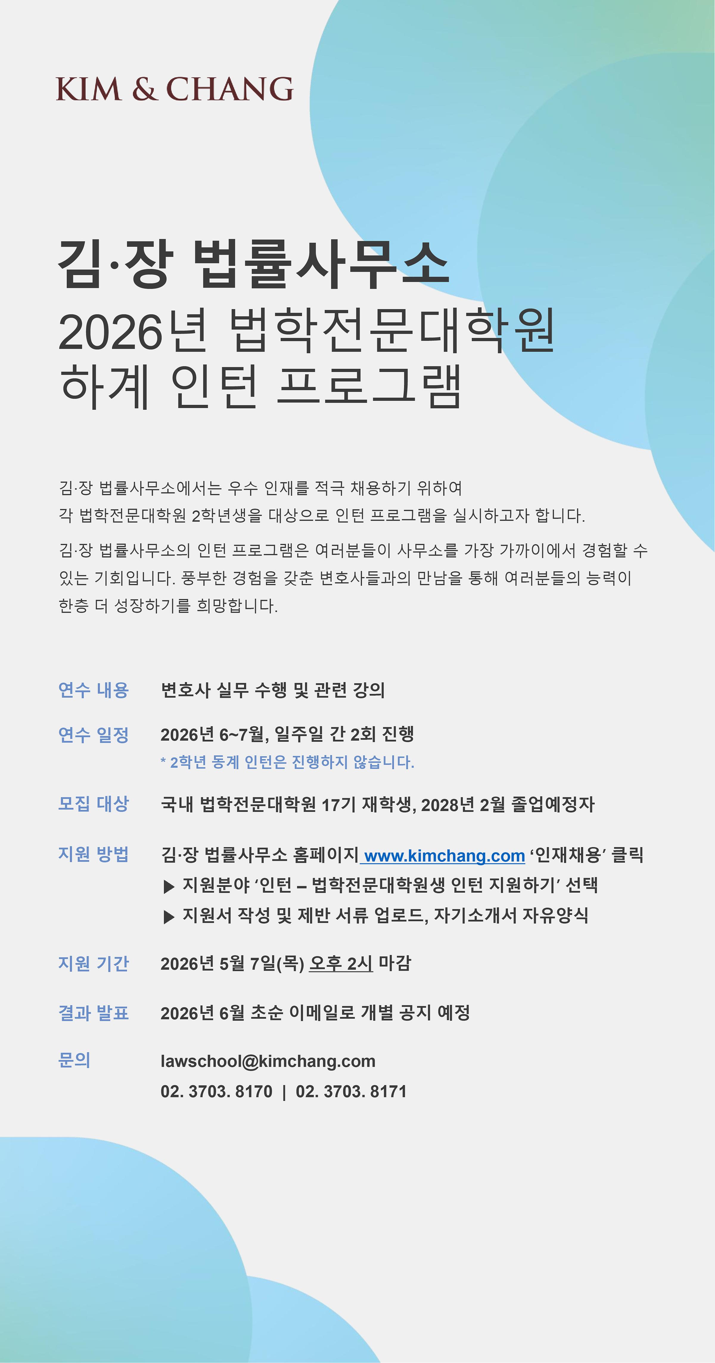 [김.장 법률사무소] 2학년 하계 인턴 지원 안내